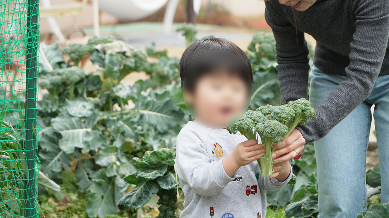 園の自然や畑をつかって親子で楽しめる活動を季節ごとに体験していただき、お子様の好奇心に応えます。園の畑で土にふれたり、季節の草花や虫と出会ったり、ときにはヤギさんとふれあったり。日常ではなかなか味わえない「本物の体験」が、子どもたちの好奇心をやさしく広げていきます。