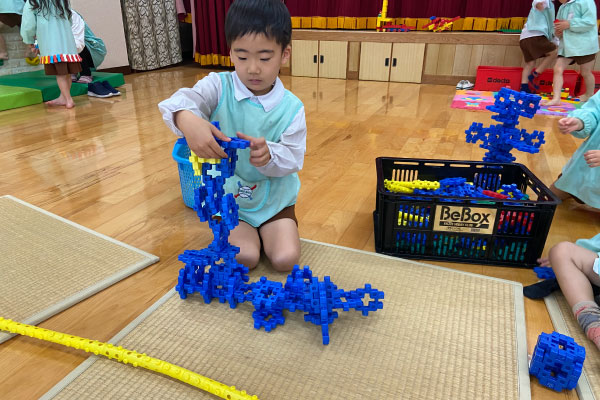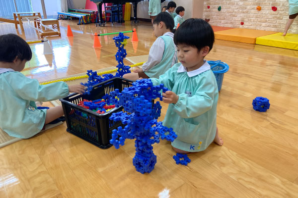 お友だちと一緒に作ったり、見せ合ったりする中で、遊びがどんどん広がっていきます。